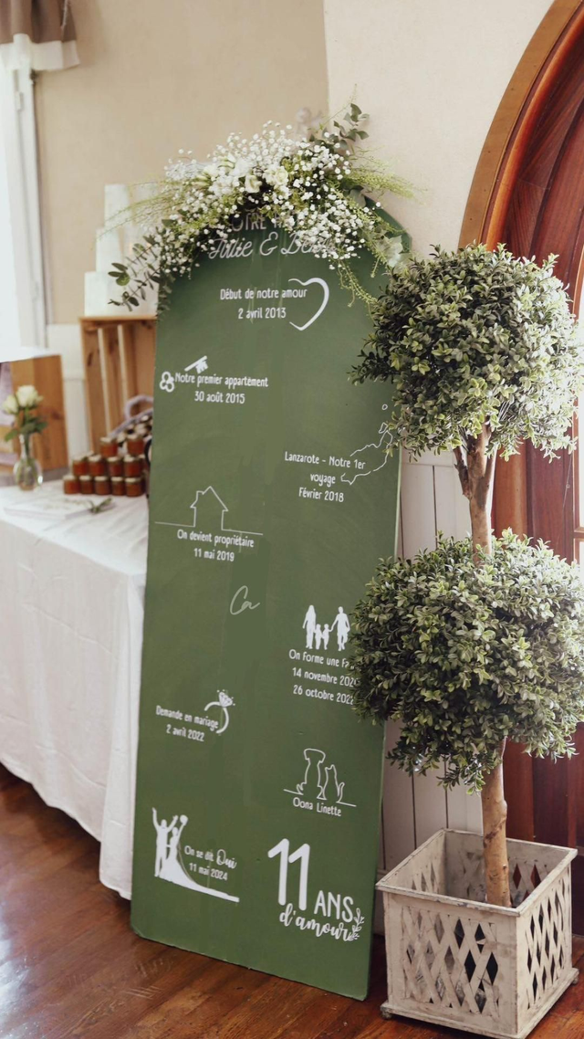 Un joli parcours illustrant l’histoire d’un couple, de la première rencontre jusqu’au mariage.
